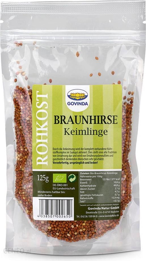 Wyjątkowe pod względem odżywczym Surowa żywność proso brązowe kiełki bio Kiełkowanie powoduje rozbicie inhibitorów zawartych w brązowym prosie, część węglowodanów jest przekształcana w łatwo przyswajalne cukry, a białko rozkładane jest na aminokwasy. Kiełkowanie jeszcze bardziej poprawia i tak doskonałe właściwości prosa brązowego. Zawartość witamin wzrasta cztero- do sześciu razy w fazie kiełkowania, zwiększa się zawartość minerałów i substancji śladowych, a także cennych jednonienasyconych i wielonienasyconych kwasów tłuszczowych. Żywy pokarm w niezmienionej, oryginalnej formie. Kiełki prosa brązowego są suszone w temperaturze 35°C i mają jakość surowej żywności. Zapewnia to pełną ochronę cennych kompleksów witaminowych, które powstają podczas kiełkowania. Mają orzechowy, lekko pikantny smak przypominający rzeżuchę. Doskonałe do twarogu, musli, pieczywa, sałatek i nie tylko oraz nadają się do bezpośredniego spożycia.